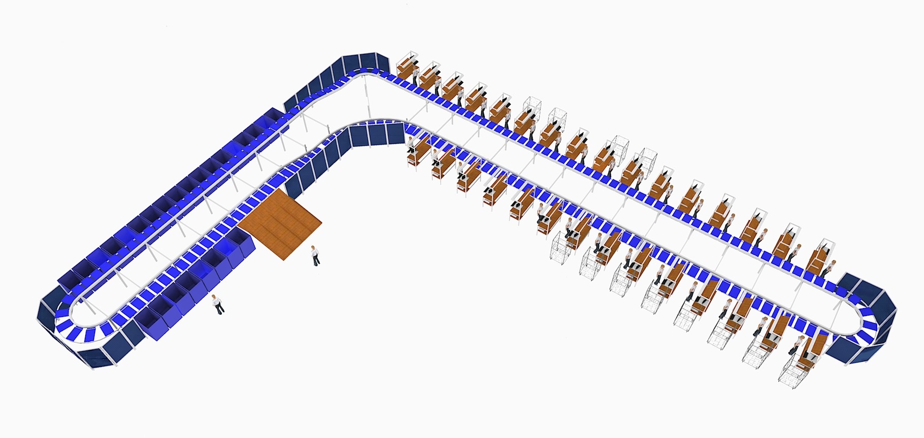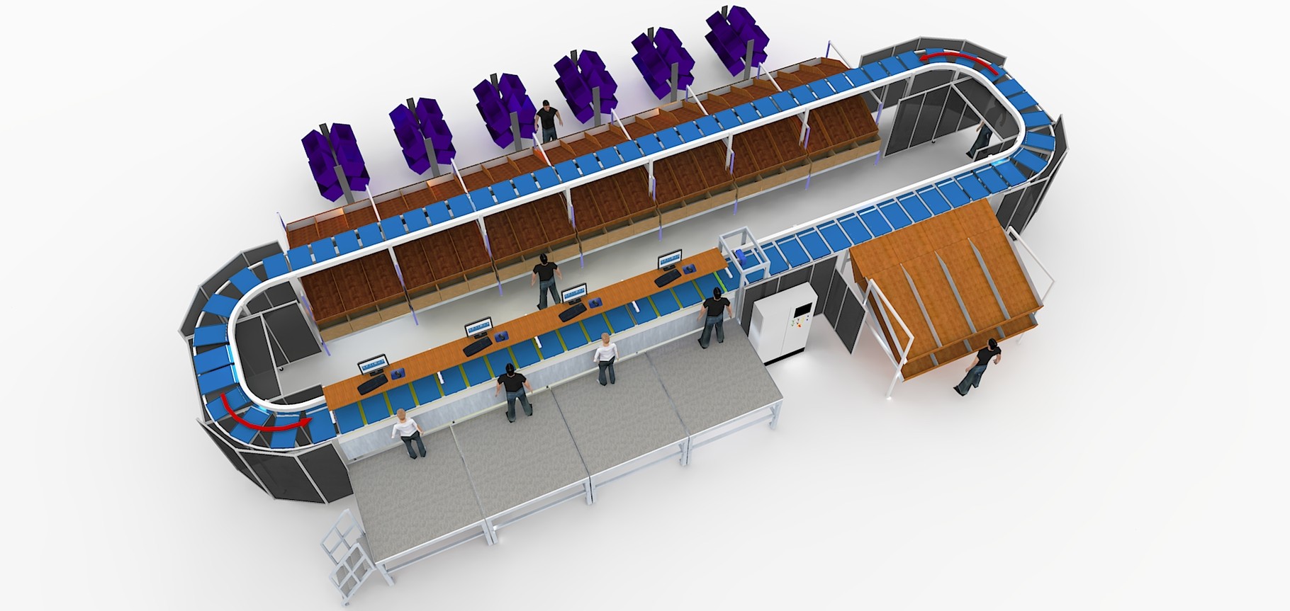 O Pusher Tray Horizontal classifica uma ampla variedade de produtos, como flyers, envelopes, vestuário, sacolas, caixas, produtos com formas irregulares, sapatos e muitos outros, todos no mesmo equipamento.