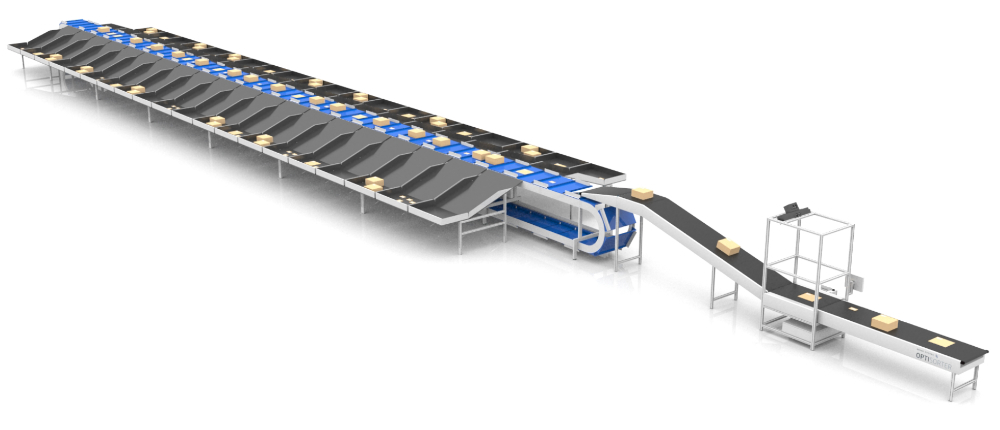 O sorter vertical Optisorter está desenhado para classificar uma grande variedade de tipos de produtos com formatos diversos. A diferencia do Optisorter de carrossel este tipo de sorter tem um layout que ocupa menor espaço com a mesma eficiência. Trata-se de uma solução efetiva com um custo de investimento muito atrativo. Se podem utilizar duas bandejas para classificar um produto: classifica até produtos com 1,2 metro de cumprimento
